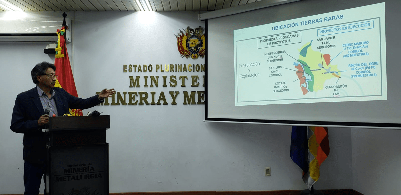 El ministro de Minería y Metalurgia de Bolivia, Marcelino Quispe, anunció que el país cuenta con más de 17 variedades de tierras raras, especialmente concentradas en los departamentos de Cochabamba, Potosí y Santa Cruz.
