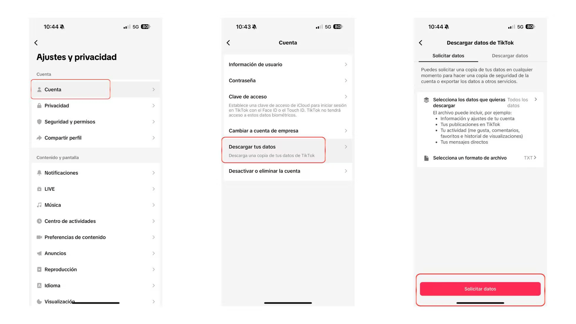 Para obtener una copia de los datos recopilados por TikTok, los usuarios pueden acceder a la configuración de su cuenta y seleccionar la opción de descargar sus datos. Esto proporciona una visión detallada de la información almacenada, que incluye detalles personales, historial de navegación, interacciones en la plataforma y preferencias de contenido.
